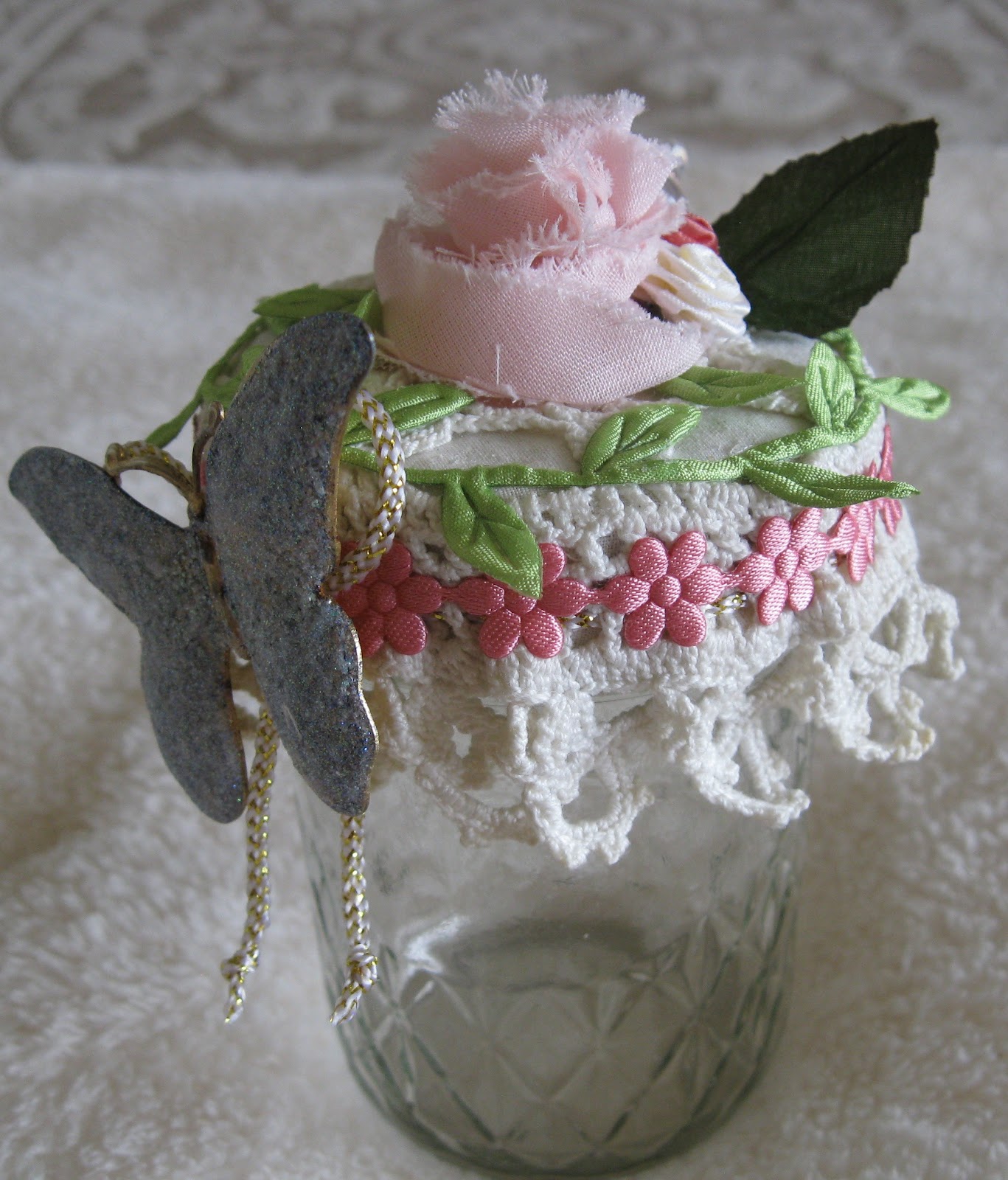 I received my jar yesterday...it's lovely. The jar lid is so pretty. Love the little hat pin stuck in the top!!