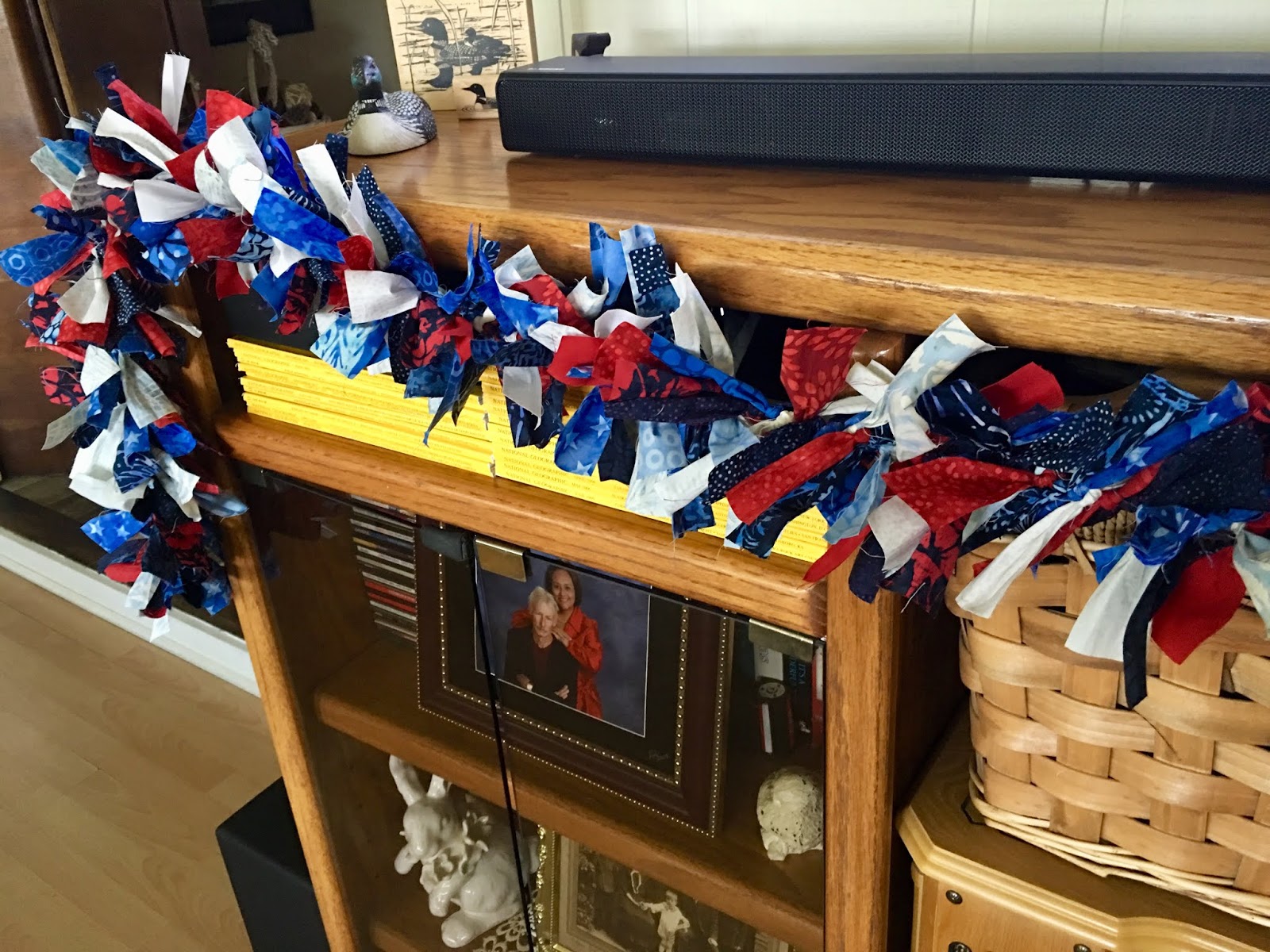 After spring was over, I put away the spring rag garland I had here. It left this piece of furniter pretty bare, and decided it was time to make another garland.